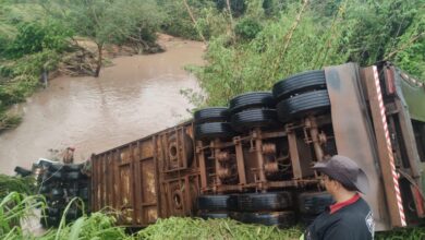 Carreta carregada de bovinos cai em rio em Pedra Preta e motorista morre preso na cabine Veja