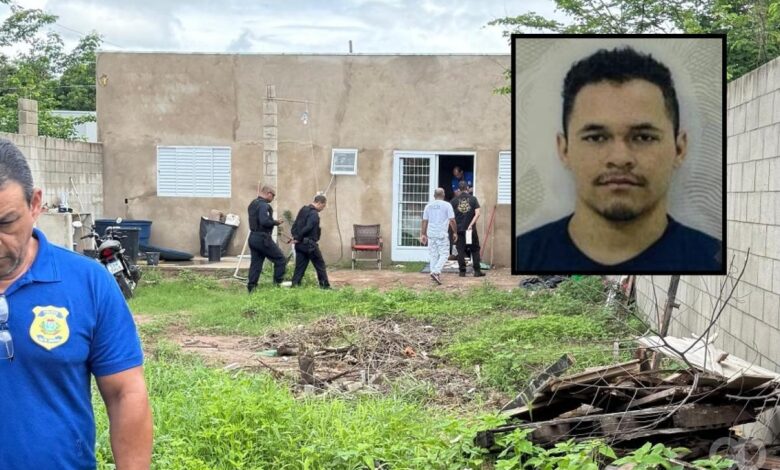 investigadores faziam buscas na casa e apreenderam uma calça branca suja de sangue, que pode ser do suspeito. Já a faca foi encontrada enterrada, na porta da casa, do lado esquerdo.