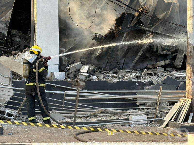Equipe destacou que demorou apenas 30 minutos para o fogo de alastrar pelo local, que desabou. Parte da estrutura está no chão e a outra parte corre risco de desabar. Atualmente, o shopping contava com 600 comércios, desde lojas que vendiam roupa, eletrônicos, calçados e até restaurantes.