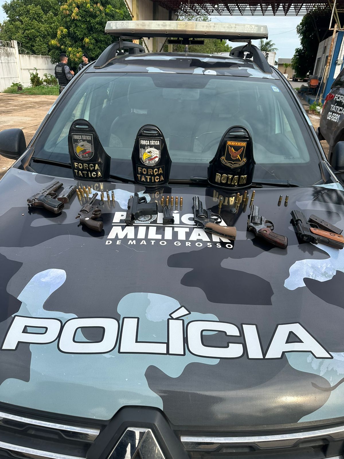 Foram apreendidas seis armas de fogo e aproximadamente 31 munições. Os presos e os armamentos apreendidos foram encaminhados à delegacia para registro do boletim de ocorrência.