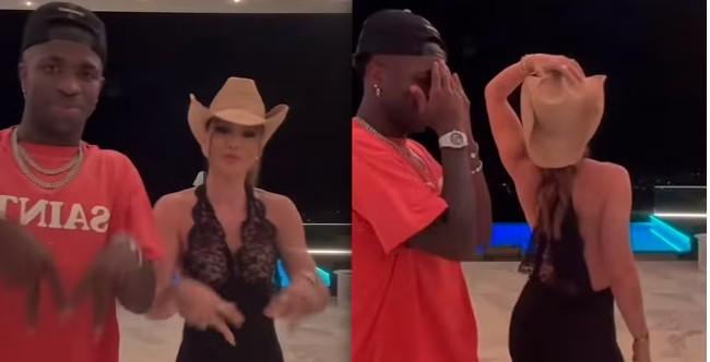 O atacante do Real Madrid publicou um vídeo em sua conta oficial no TikTok fazendo uma dancinha da moda junto à influenciadora. Os dois gravaram a coreografia do funk “Fez o M, Tirou Foto” na área externa da mansão do jogador em Madri, na Espanha. Veja o vídeo no topo da matéria!